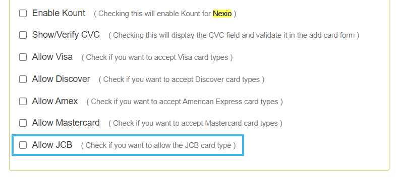 🈶 Added Support for JCB Card Type to Nexio